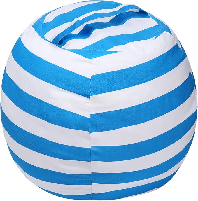 2 PCS Stuffed Animal Storage Bean Bag Chair Cover, Cotton Canvas Beanbag with Zipper for Organizing Kid's and Adults Room Blue 24"