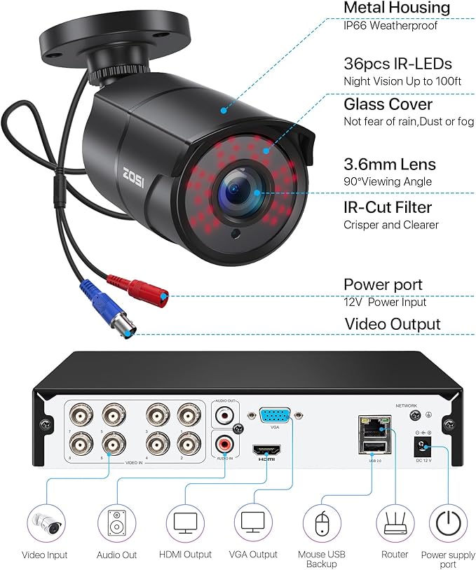 About This 【Only Compatible with ZOSI 3K Lite DVR】This HD-TVI wired camera is Only compatible with ZOSI 3K Lite DVR(ZR08VN,ZR08MN)....