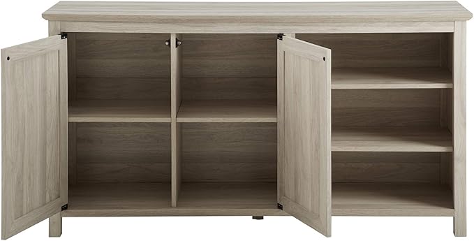 Walker Edison Modern Wood Grooved Buffet Sideboard with Open Storage-Entryway Serving Storage Cabinet Doors-Dining Room Console, 58 Inch, Birch