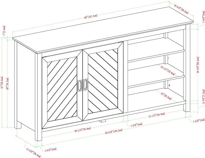 About This 31" H x 58" L x 15.75" W Adjustable shelves Made from high-grade certified MDF for long-lasting construction...