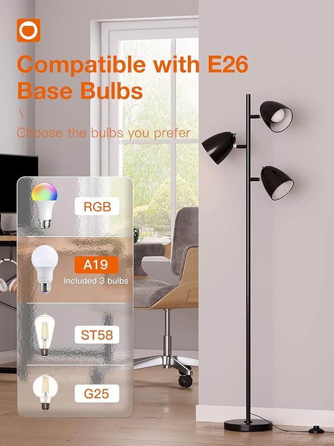 About This Comes with 3 LED Bulbs - Addlon floor lamp includes three 9 Watt, 800 Lumen UL listed LED...