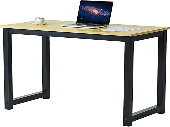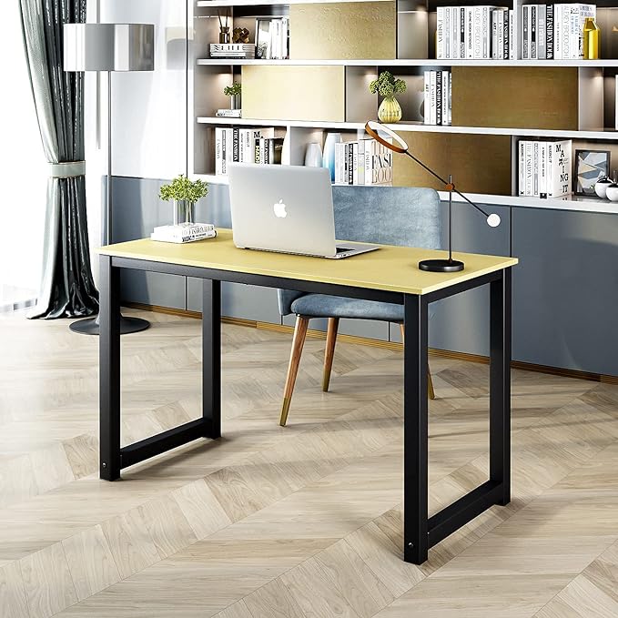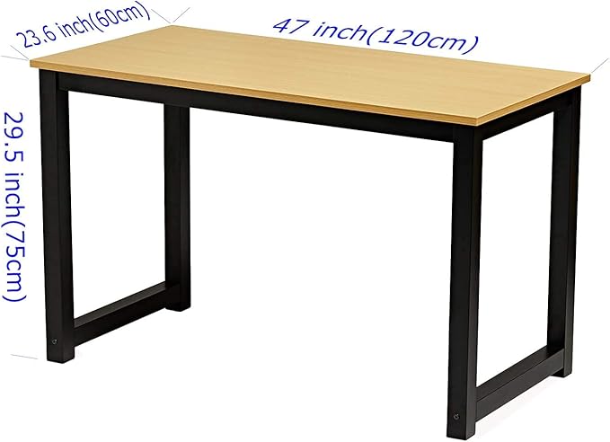 Computer Writing Desk 47 inch,Modern Simple Style PC Table, Black Metal Frame, Sturdy Home Office Table,Oak