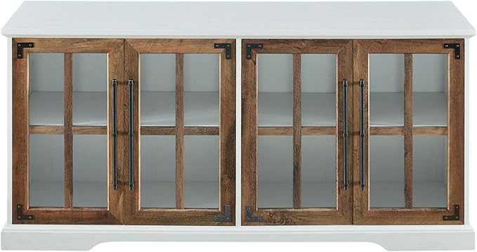 Walker Edison Modern Glass and Wood Universal TV Stand with 4 Door Storage For TV's up to 64" Flat Screen Living Room Storage Entertainment Center, 58 Inch, Rustic Oak