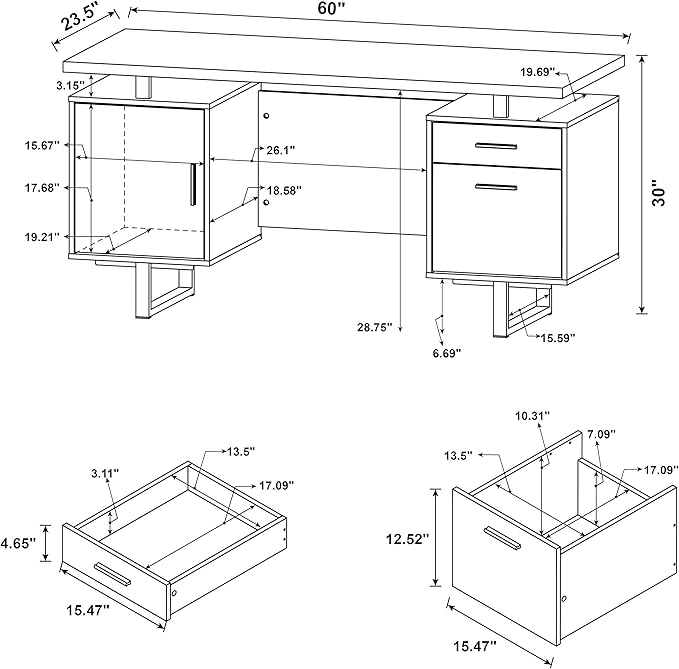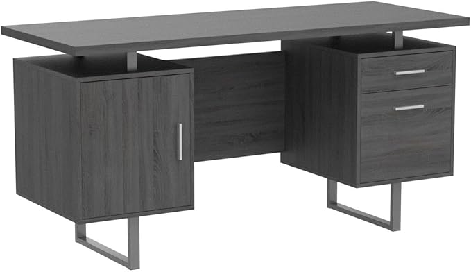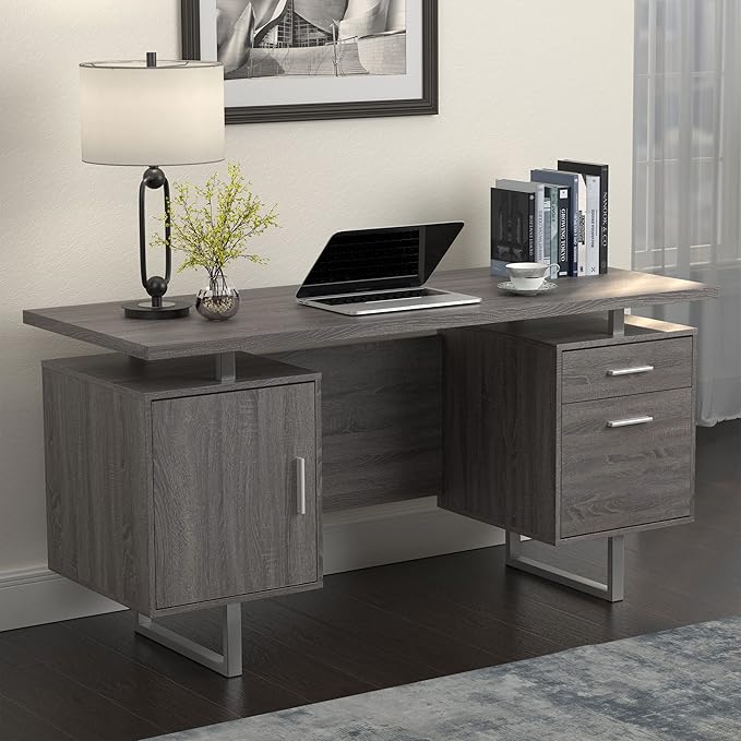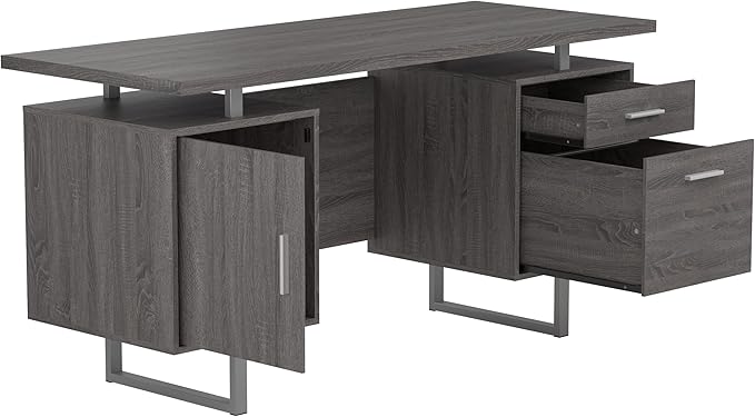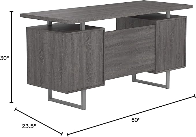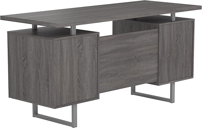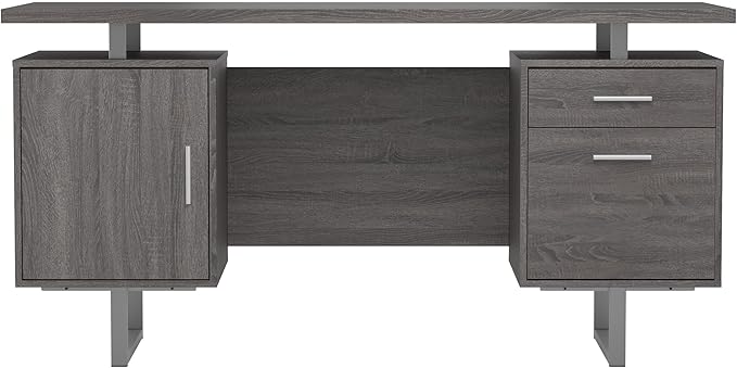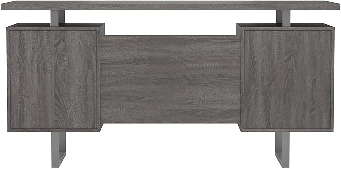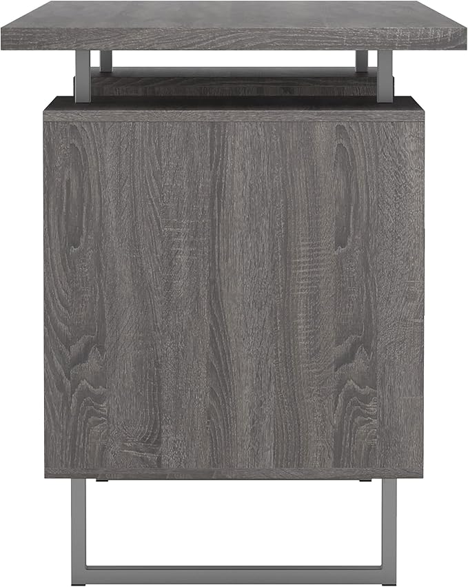 About This Set includes: One (1) office desk Finish: Weathered grey Materials: Metal, MDF, particle board and laminate Overall office...