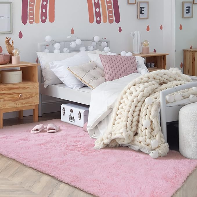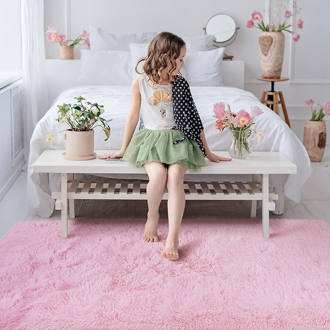 Softlife Ultra Soft Fluffy Area Rugs for Bedroom, Girls and Boys Room Kids Room Nursery Rug, 3 x 5 Feet Shaggy Fur Indoor Plush Modern Floor Carpet for Living Room Christmas Decor, Pink