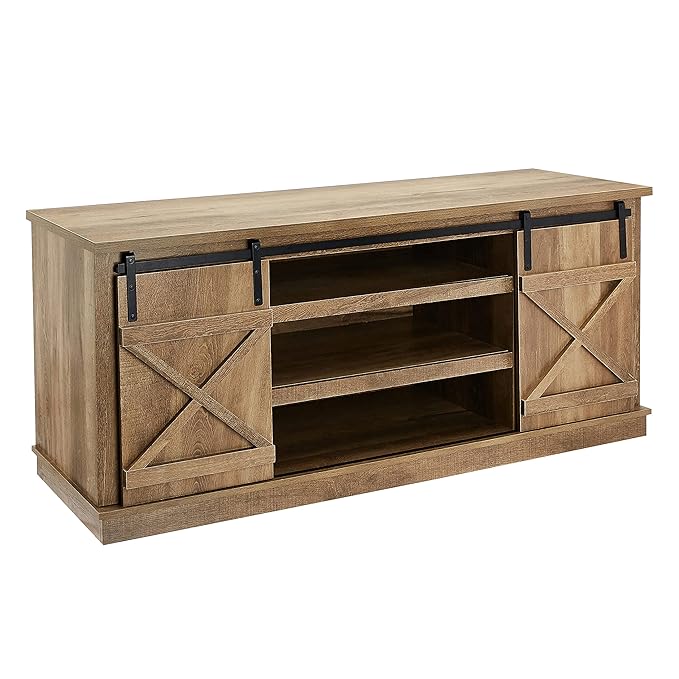 About This 60inch TV stand with slide barn door Mixing urban industrial, modern farmhouse, and rustic design style slide barn...