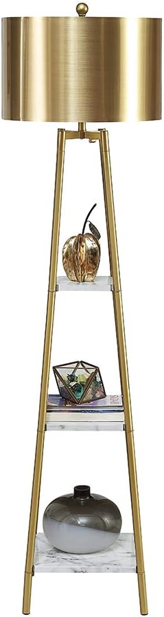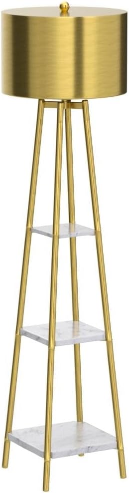 Floor Lamp, Standing Reading Light with Shelves and Gold Shade, Modern Tall Pole Lamp, Accent Furniture Décor Lighting for Living Room, Bedrooms