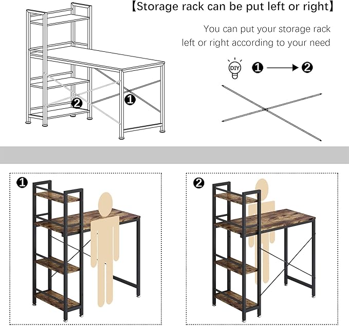 4NM 35" Small Computer Desk with 4-Tier Bookshelf, Home Office Desk Writing Workstation Study Table Multipurpose for Small Space Work - Rustic Brown and Black