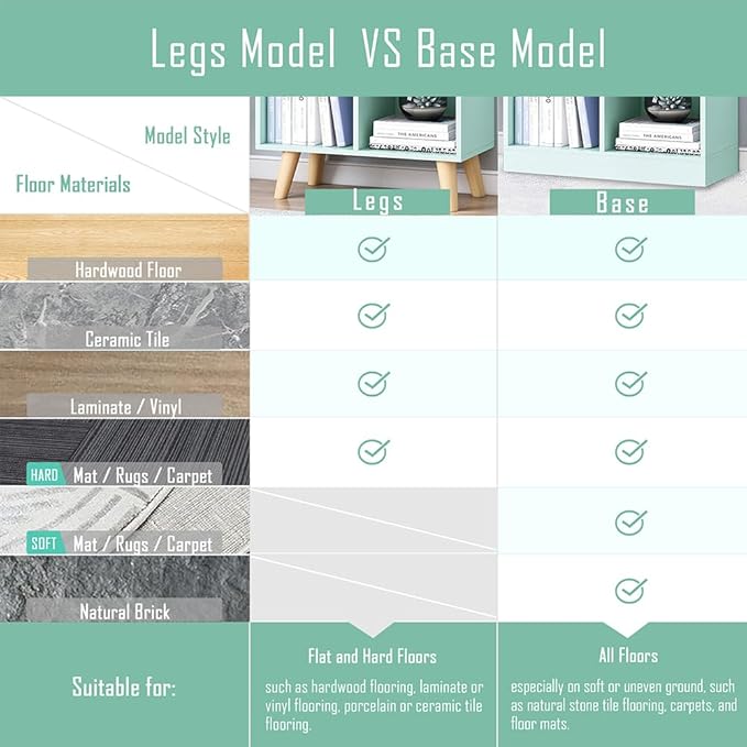 IOTXY Wooden Open Shelf Bookcase - 3-Tier Floorstanding Display Cabinet Rack with Legs, 5 Cubes Free Standing Bookshelf, Tiffany-Green