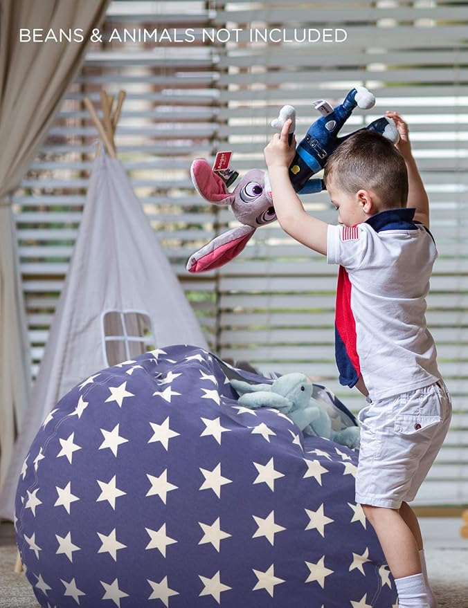 Aubliss Stuffed Animal Storage Bean Bag Chair Cover (No Beans),Stuff and Sit Storage Bean Bag for Kids Toy Storage, Medium 32"-Canvas Stars Royal Blue