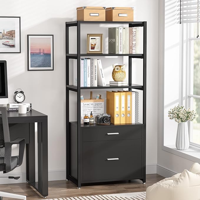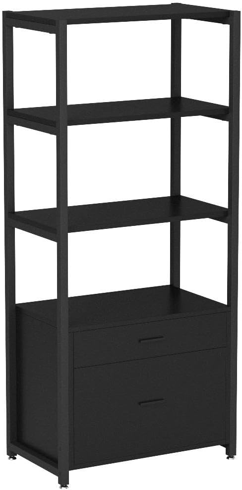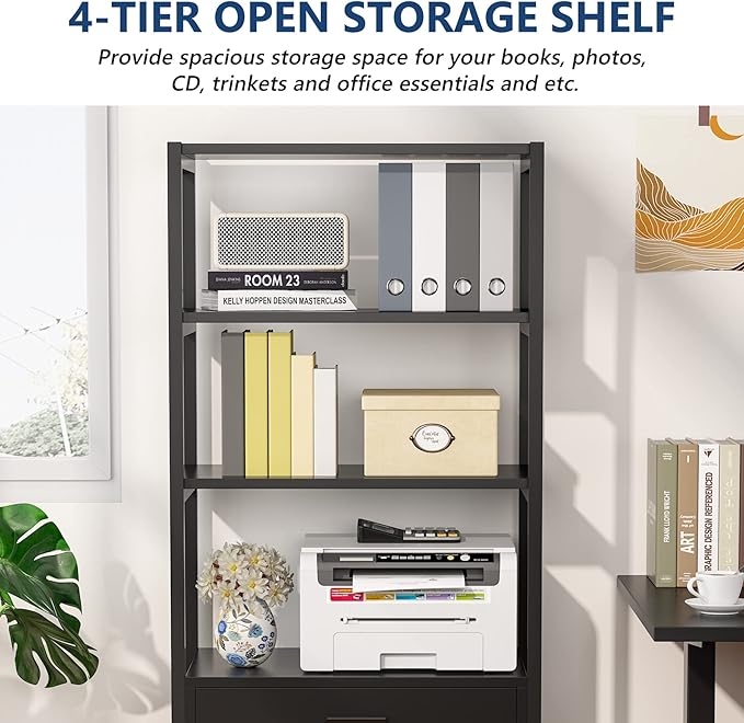 Tribesigns Bookcase Bookshelf, 4-Tier Modern File Cabinet with 2 Drawers, Lateral Filing Cabinet accommodate Legal/Letter / A4 Size for Home Office Organizer