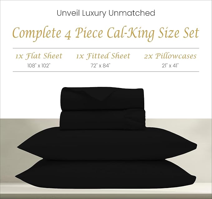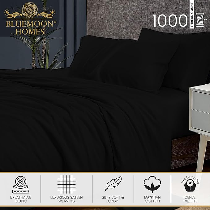 Bluemoon Homes California King Sheets Thread Count 1000 Deep Pocket 100% Egyptian Cotton Cal King Sheets Hotel Luxury Fits Mattress Up to 18 inches, Solid Pattern 4-Piece BedSheet (Black)