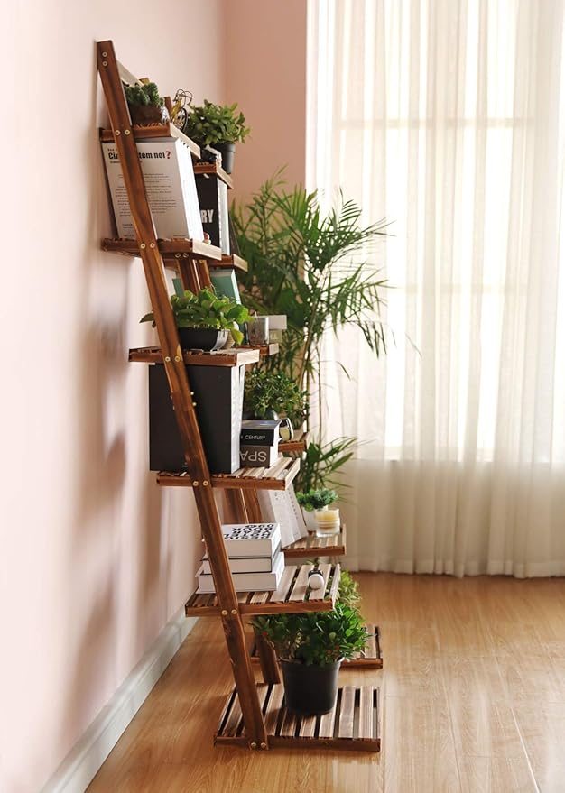 About This [Multi-purpose] The 6-tier bookshelf ladder can be used as a plant shelf, book shelf, storage shelf in the...