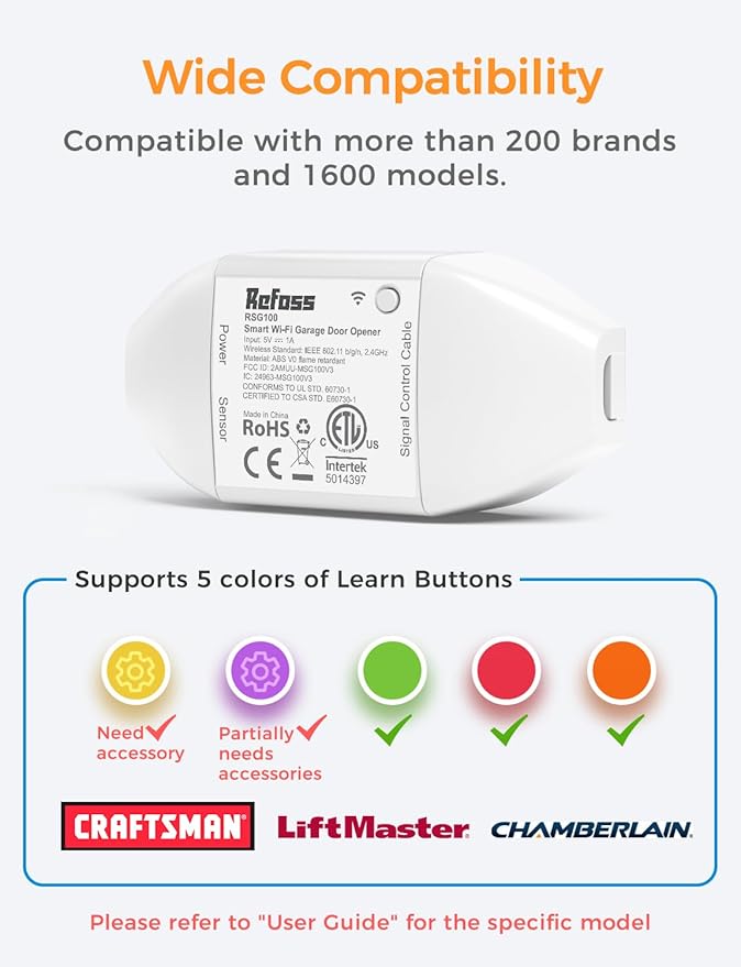 About This Remote Control: Open, close, check door status, receive just within your Refoss iOS/android App. No monthly fee or...