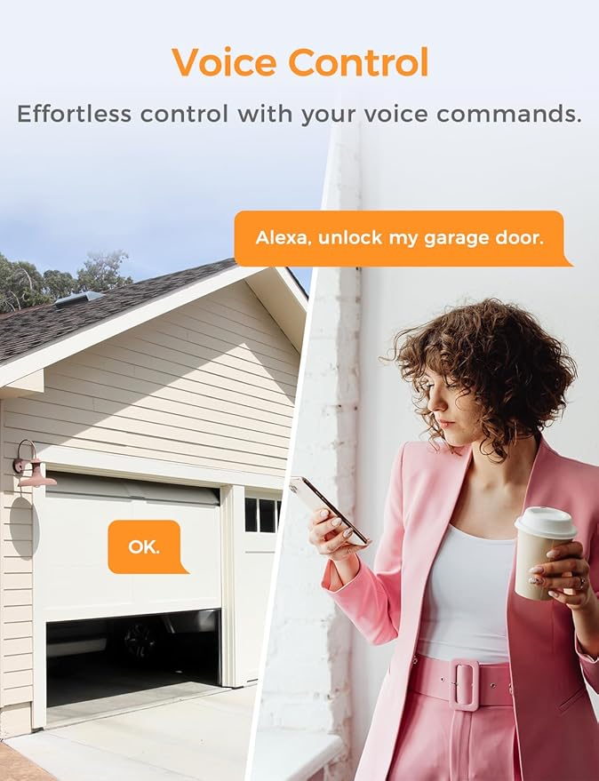 Smart Wi-Fi Garage Door Opener, Compatible with Apple HomeKit, Siri, Alexa & Google Assistant, Carplay, App Remote Control, Only Support 2.4GHz Networks