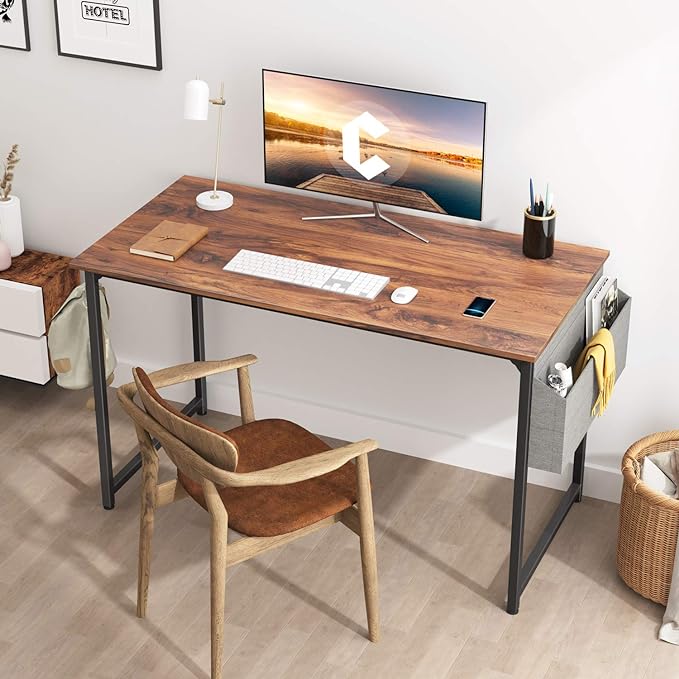 CubiCubi Computer Desk 40 Inch Study Writing Table for Home Office, Modern Simple Style PC Table with Storage Bag, Brown