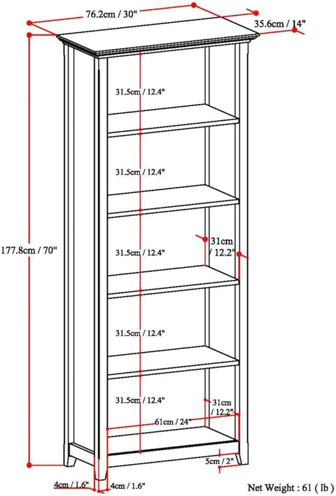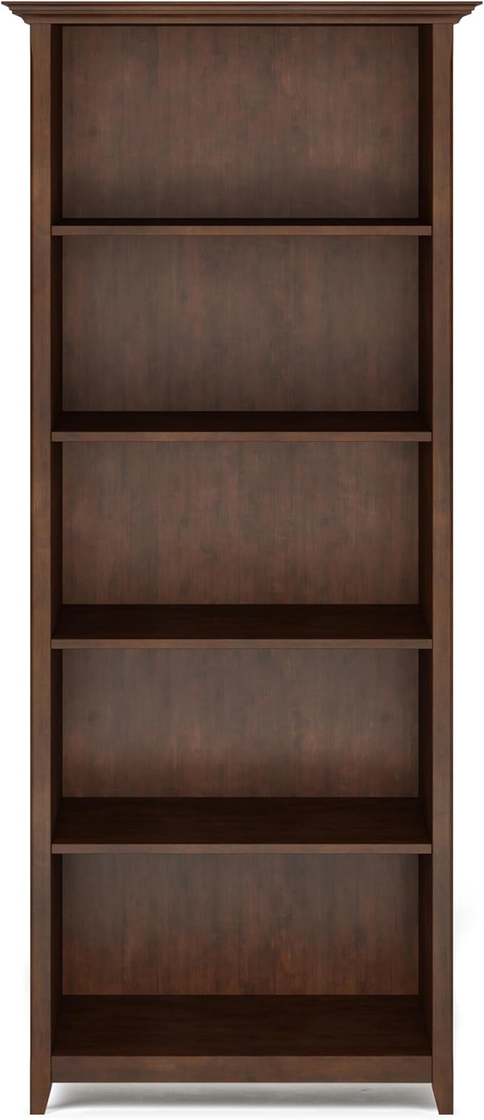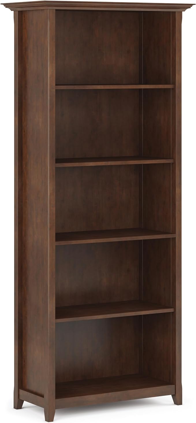 SIMPLIHOME Amherst SOLID WOOD 30 Inch Transitional 5 Shelf Bookcase in Russet Brown, For the Living Room, Study Room and Office