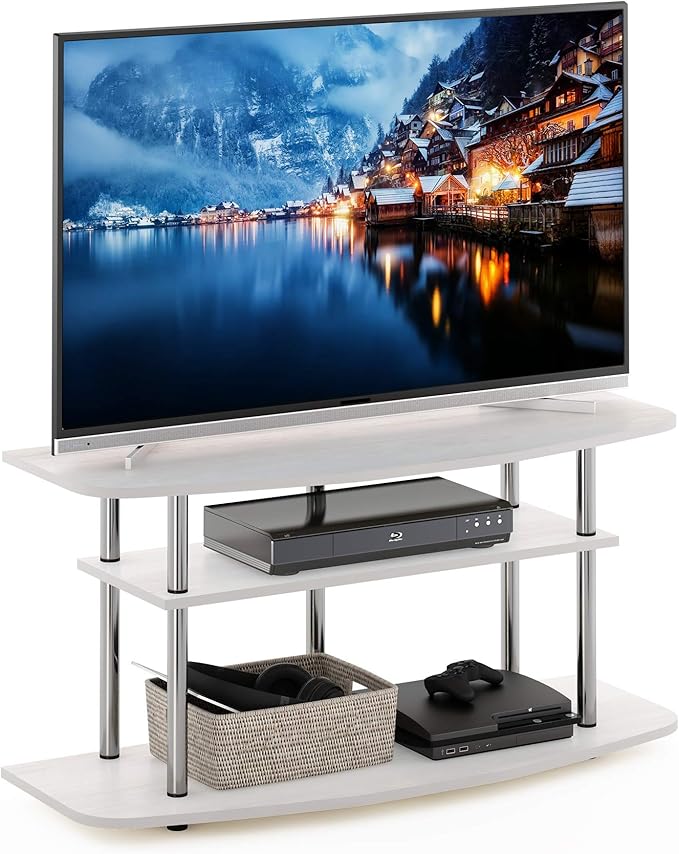 Furinno Frans Turn-N-Tube TV Stand for TV Size up to 43 Inch, 3-Tier, White Oak