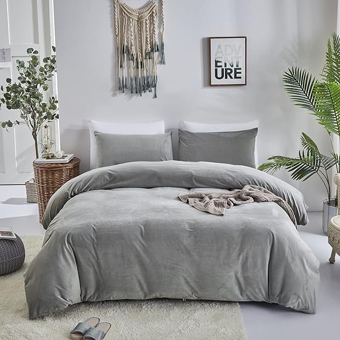 About This 【HIGH QUALITY&DURABLE CONSTRUCTION】 This gray velvet comforter is covered by high quality velvet material and filled with whole-piece...