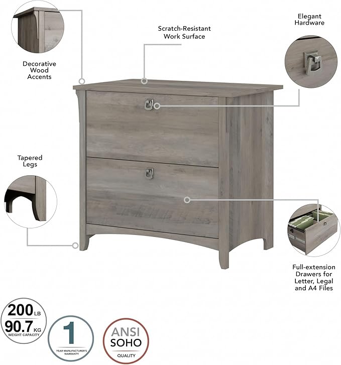 Bush Furniture Salinas 2 Drawer Lateral File Cabinet in Driftwood Gray