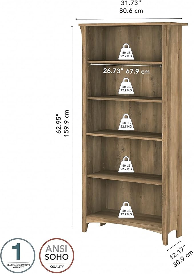Bush Furniture Salinas Tall 5 Shelf Bookcase in Reclaimed Pine