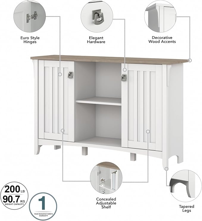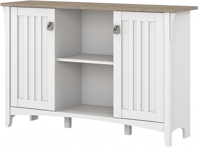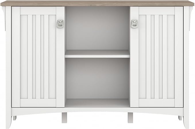 Bush Furniture Salinas Accent Storage Cabinet with Doors in Pure White and Shiplap Gray