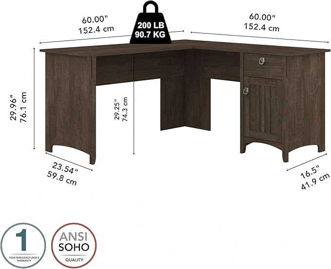 Bush Furniture Salinas L-Shaped Desk with Storage | Study Table with Drawers & Cabinets | Home Office Computer Desk in Ash Brown
