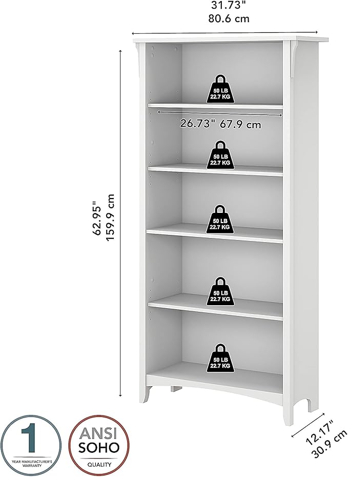 Bush Furniture BSH24463038 Salinas 5-Shelf 63-Inch H Bookcase, Pure White