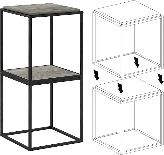 Furinno Moretti Cube Modern Stackable End Table Shelf, French Oak Grey