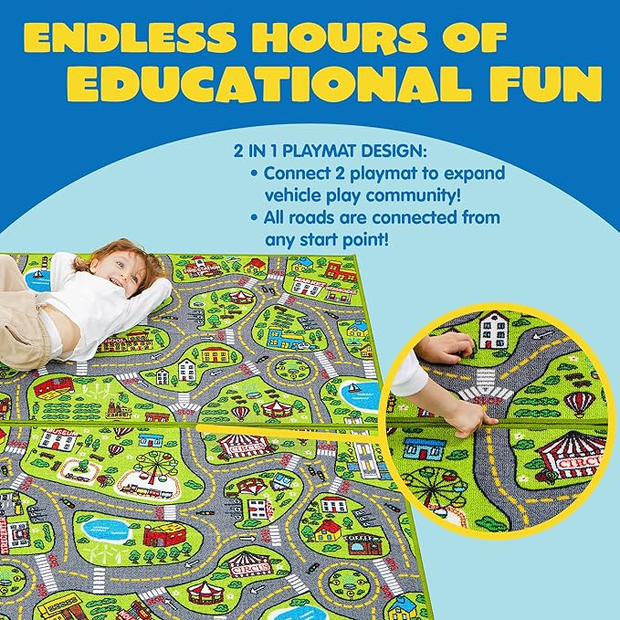 JOYIN 2 Pack Playmat City Life Carpet for Kids Age 3+, Jumbo Play Room Rug, City Pretend Play