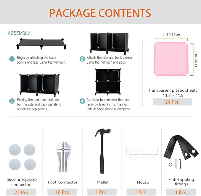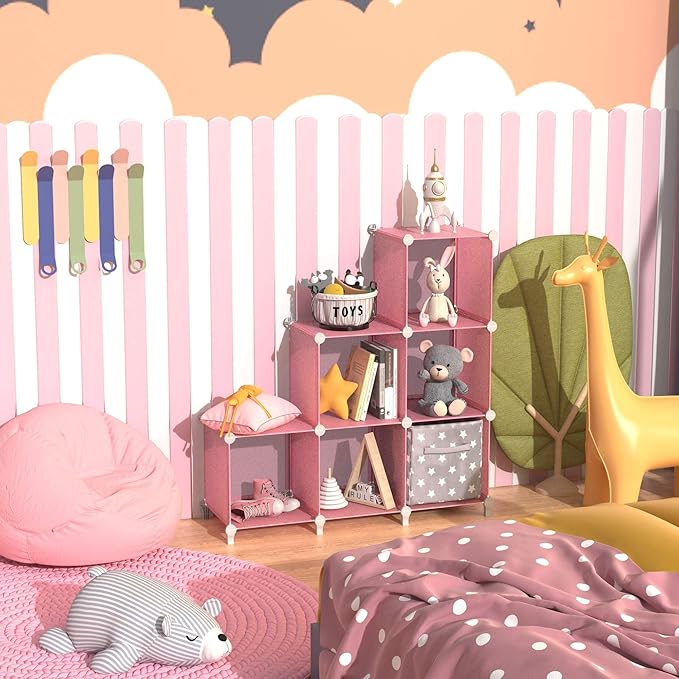 HOMIDEC 6-Cube Storage Shelf, Storage Bookcase Bookshelf with Metal Hammer, Storage Cubes Organizer Cabinet for Kids, Closet, Bedroom, Bathroom, (11.8x11.8x11.8 inch), Light Pink