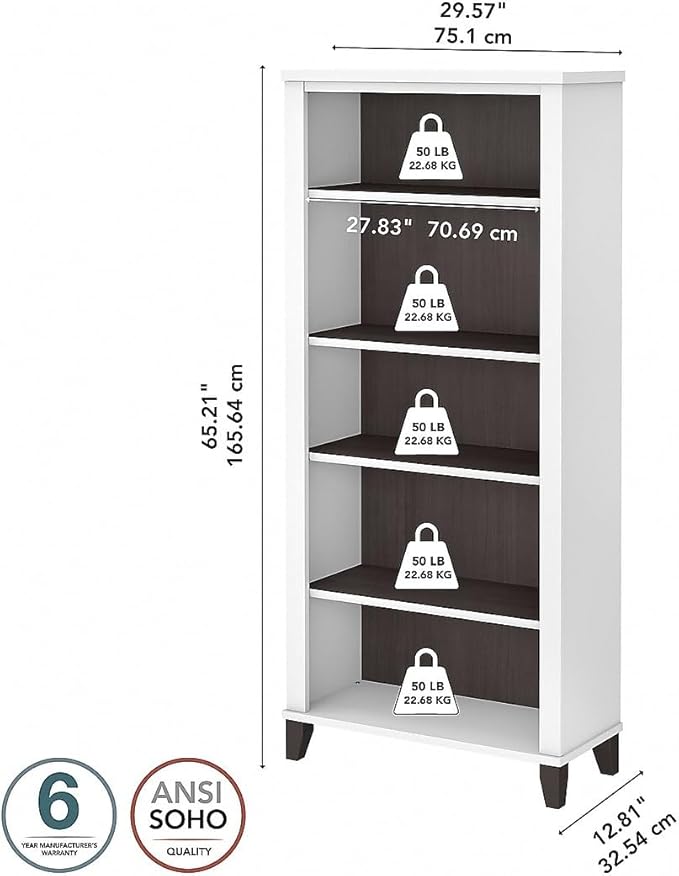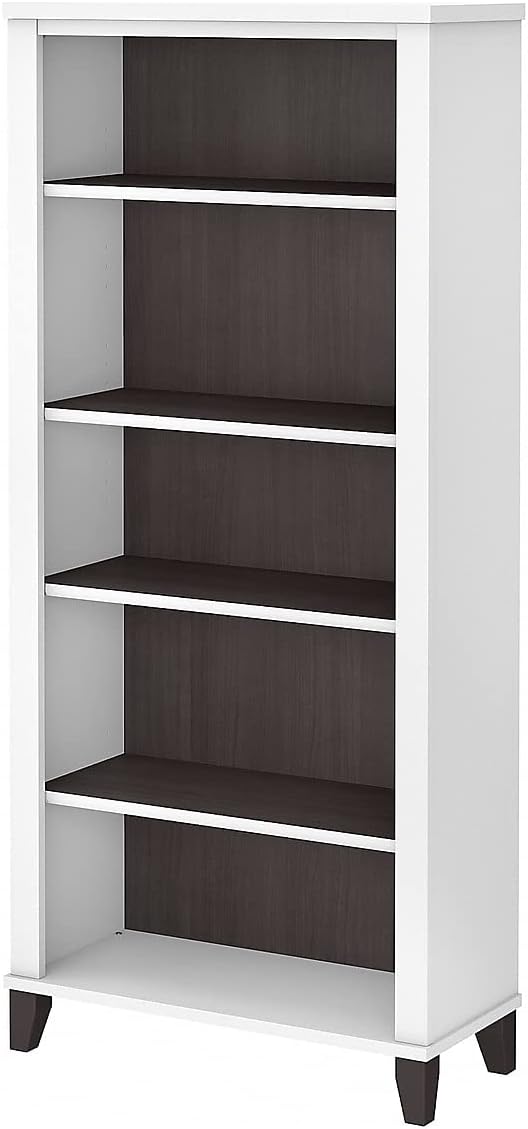 Bush Furniture Somerset 5-Shelf 65-inch H Bookcase, Storm Gray/White (WC81065)