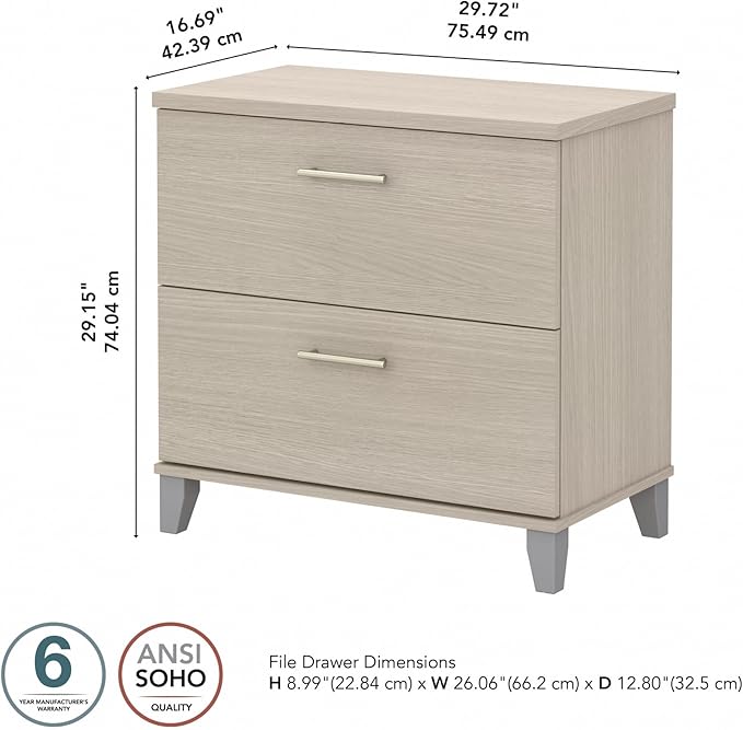 Bush Furniture Somerset 2 Drawer Lateral File Cabinet in Sand Oak