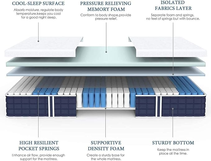 Coolvie Twin XL Mattress, 10 Inch Twin XL Size Hybrid Mattress, Individual Pocket Springs with Memory Foam, Bed in a Box, Cooler Sleep with Pressure Relief and Support