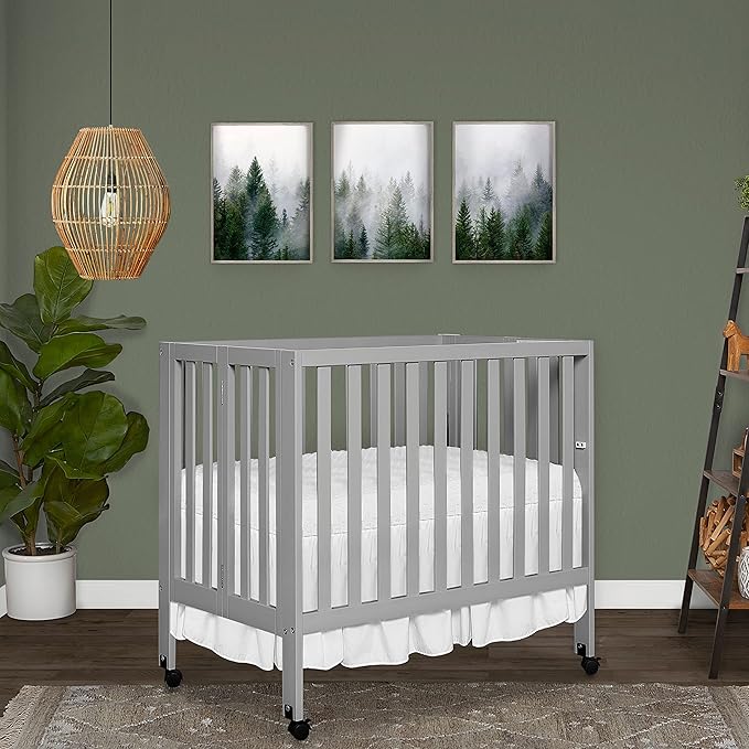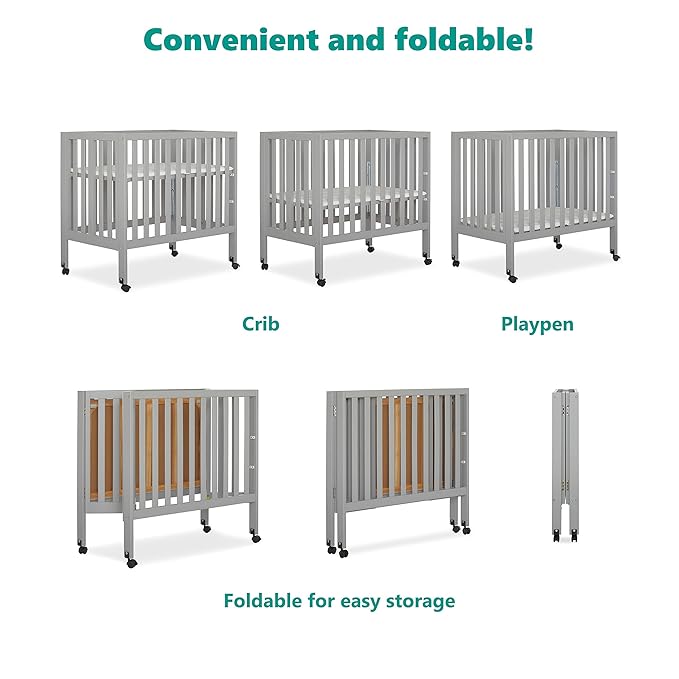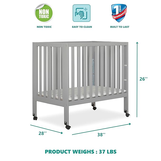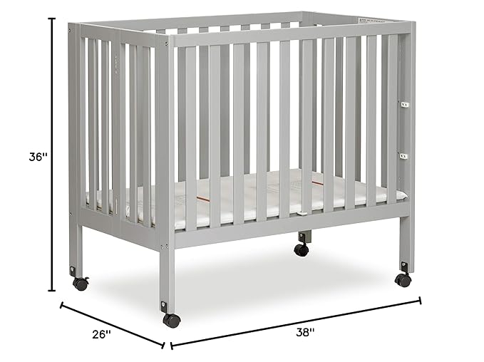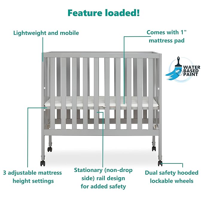 Jett Non-Full Size Folding Convertible Crib, Lightweight Portable Crib, Three Adjustable Mattress Height Settings, Easy to Fold Travel Crib, 1.5” Mattress Pad Included