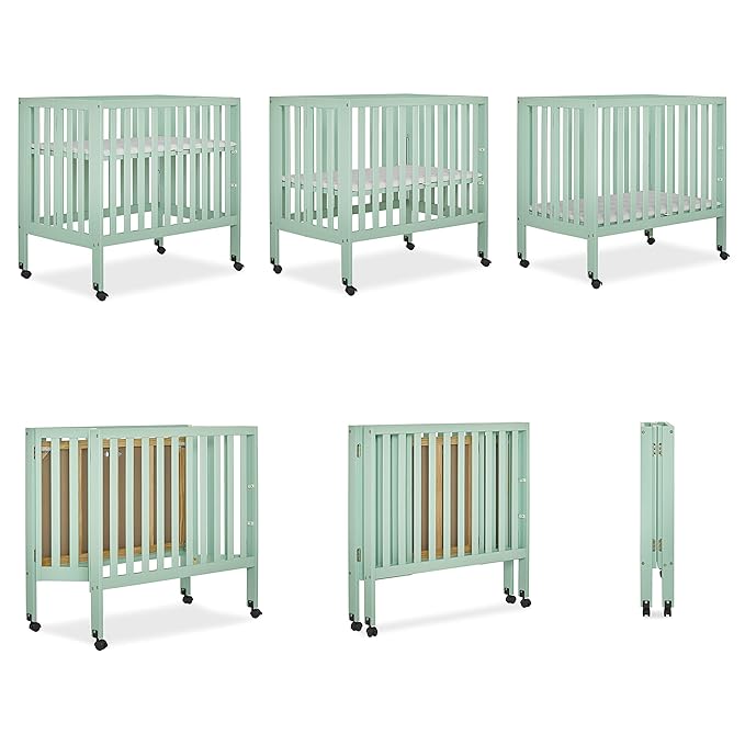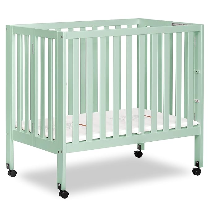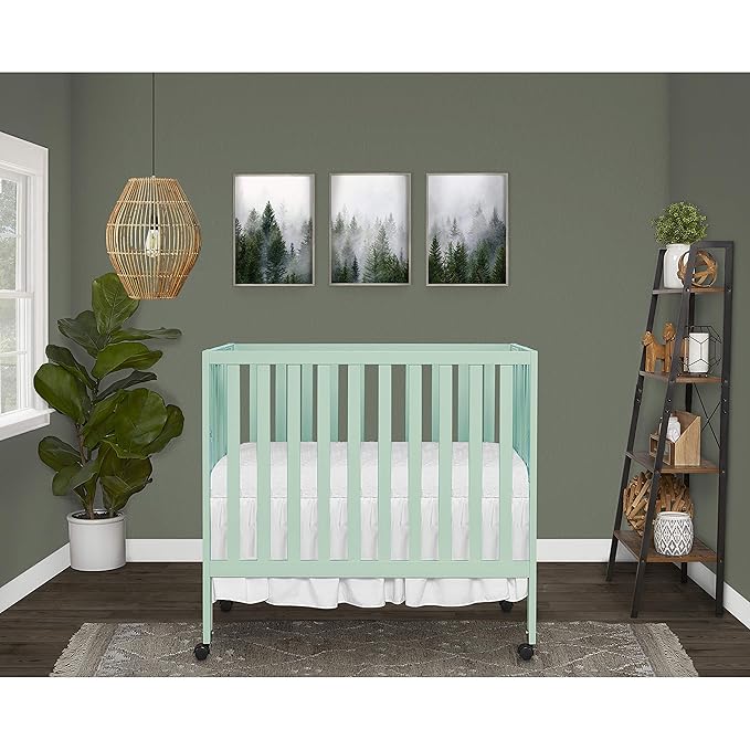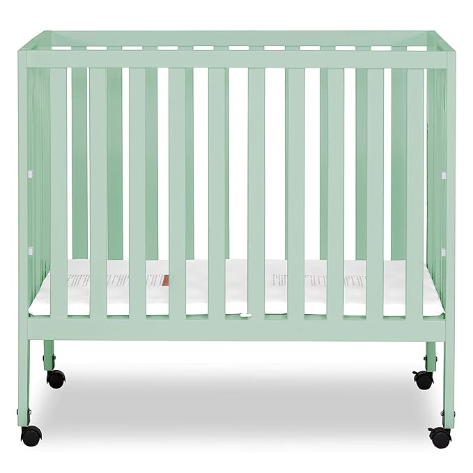 Jett Non-Full Size Folding Convertible Crib, Lightweight Portable Crib, Three Adjustable Mattress Height Settings, Easy to Fold Travel Crib, 1.5” Mattress Pad Included