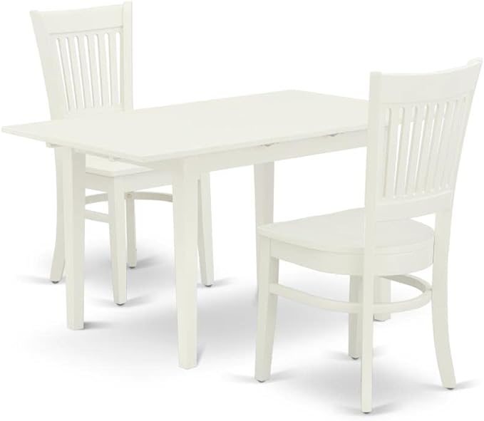 East West Furniture NFVA3-LWH-W 3 Piece Room Furniture Set Contains a Rectangle Kitchen Table with Butterfly Leaf and 2 Dining Chairs, 32x54 Inch