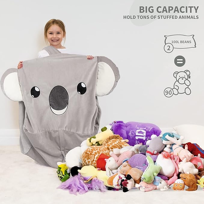 Aubliss Stuffed Animal Storage Bean Bag Chairs for Kids, Velvet Extra Soft Beanbag Chair Cover, X-Large Stuffable Zipper Bean Bag for Organizing Plush Toys Boys Girls, Koala