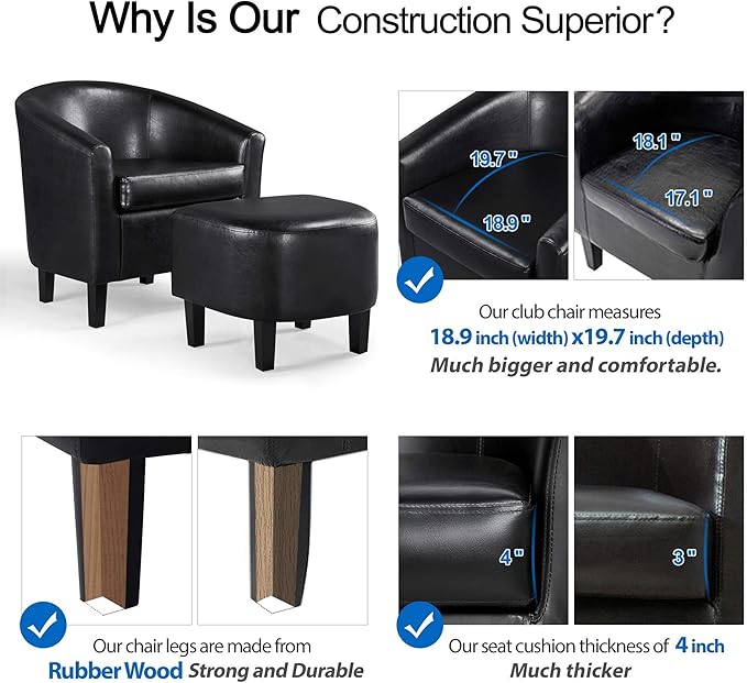 Yaheetech Accent Chair with Ottoman Set, Modern Faux Leather Upholstered Soft Barrel Chair and Footrest, Club Armchair and Footstool for Living Room/Bedroom/Reading Room/Guest Room, Black