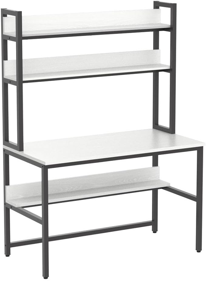 Aquzee Computer Desk with Hutch and Bookshelf, 47 inch Wide White Home Office Desk with 3 Tier Storage Shelves, for Study Writing Work, Easy Assemble