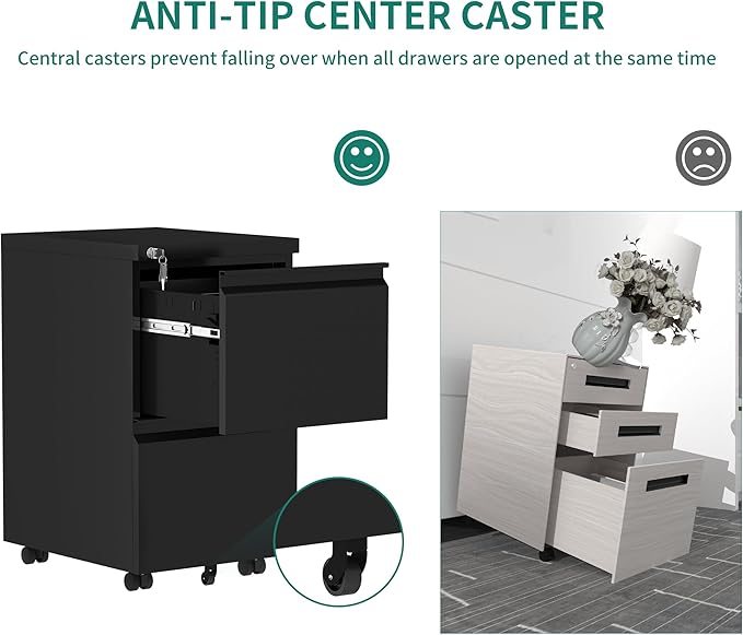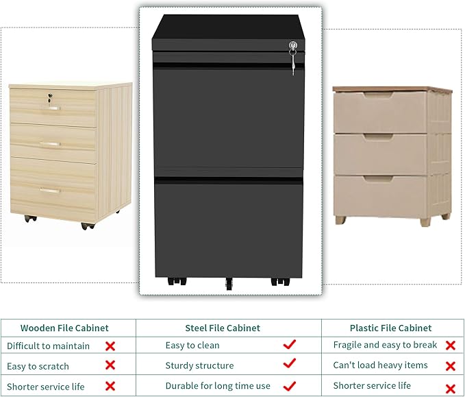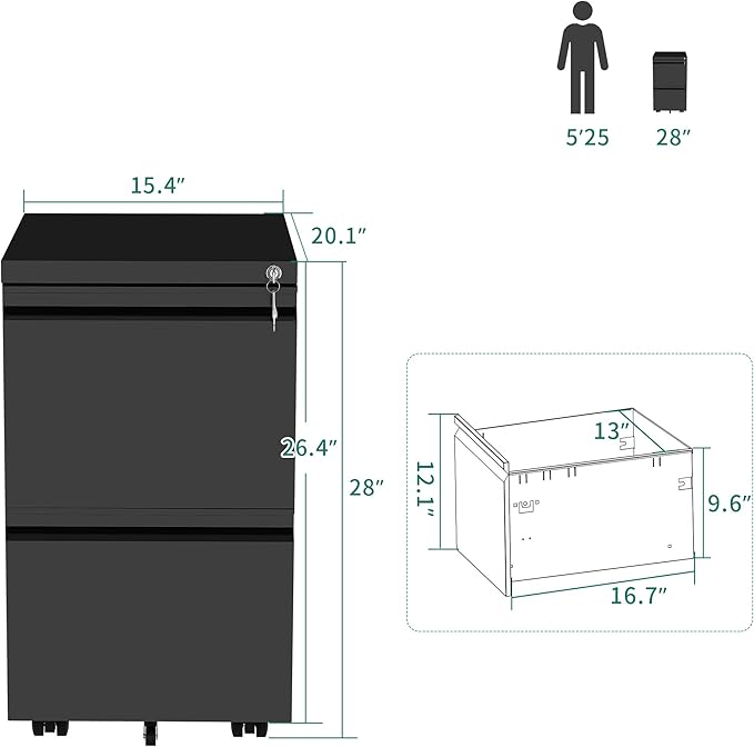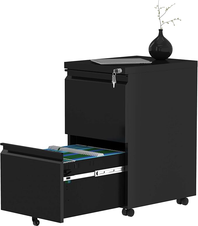 YITAHOME 2-Drawer Vertical File Cabinet with Lock, 20” Deep Mobile Metal Filing Cabinet for Legal/Letter Size, 20” Height Pre-Built Office Storage File Cabinet Except Wheels Under Desk - Black