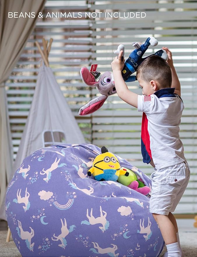Aubliss Stuffed Animal Storage Bean Bag, Unicorn Bean bag Chair, Stuff 'n Sit for Kids, X-Large 48"-Canvas Unicorn Blue