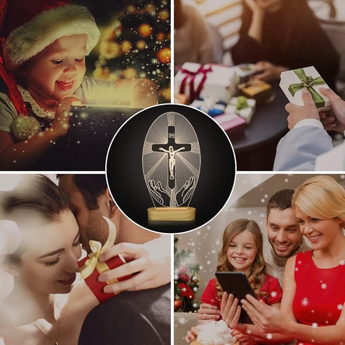 Baptism Gifts for Boys, Wood Bedside Lamp, Yellow, USB Powered, Jesus Cross Decor, LAMP