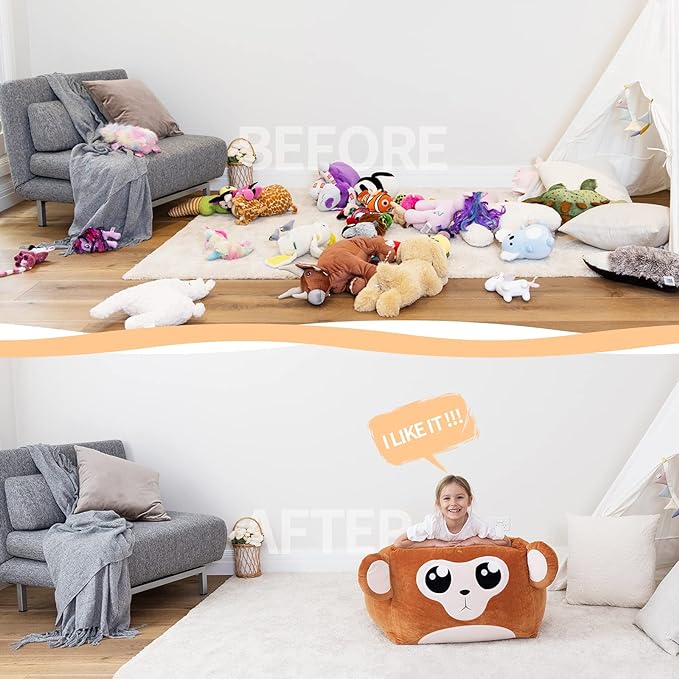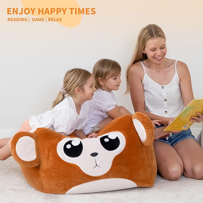 Aubliss Unicorn Stuffed Animal Storage Bean Bag Chair for Kids, Velvet Extra Soft Beanbag Chairs Cover, X-Large Stuffable Zipper Bean Bag for Organizing Plush Toys Girls Bedroom Decor, Monkey