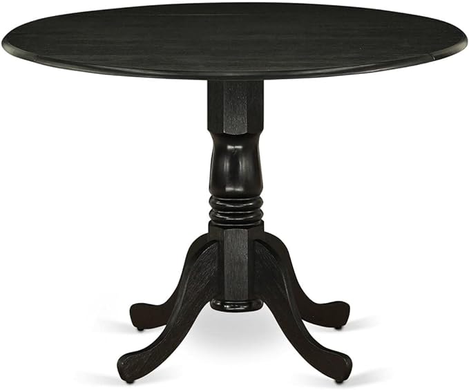 East West Furniture DMT-ABK-TP Dublin Dining Room Table - a Round Wooden Table Top with Dropleaf & Pedestal Base, 42x42 Inch, Wirebrushed Black