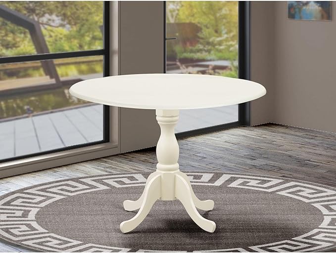 East West Furniture DMT-LWH-TP Dublin Modern Kitchen Table - a Round Dining Table Top with Dropleaf & Pedestal Base, 42x42 Inch, Linen White