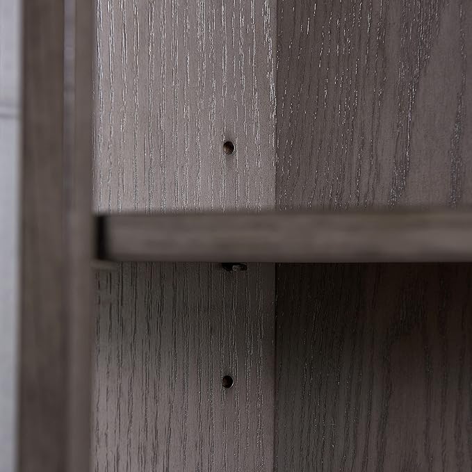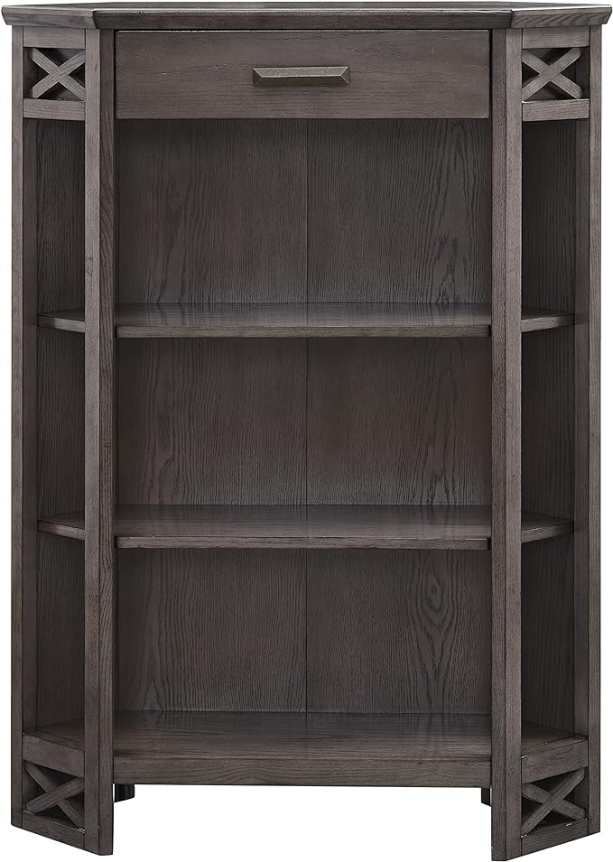 Leick Home 84263 Mantel Height 3-Shelf Corner Bookcase with Drawer Storage, Gray Oak