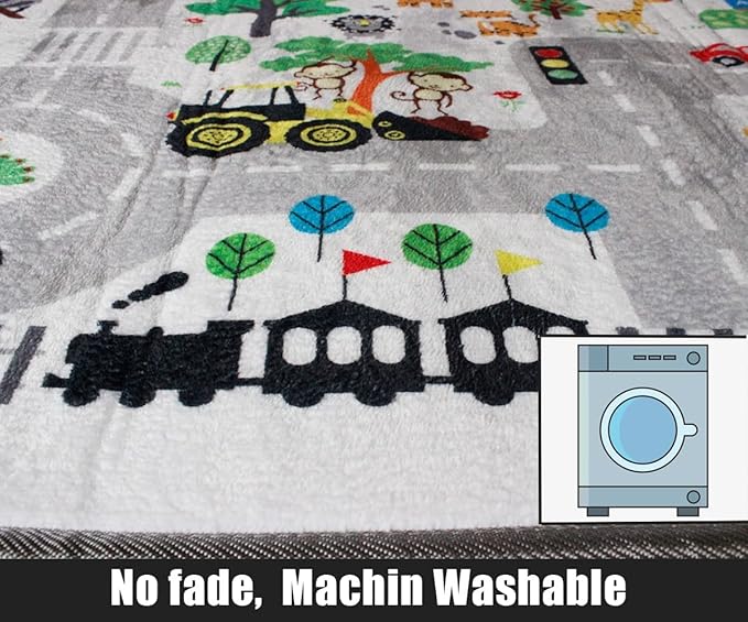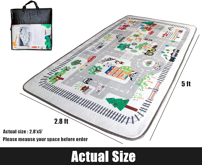 Kids Rug Play Mat, City Life Great for Playing with Cars for Bedroom Playroom,Soft Carpet (2.6'x5')