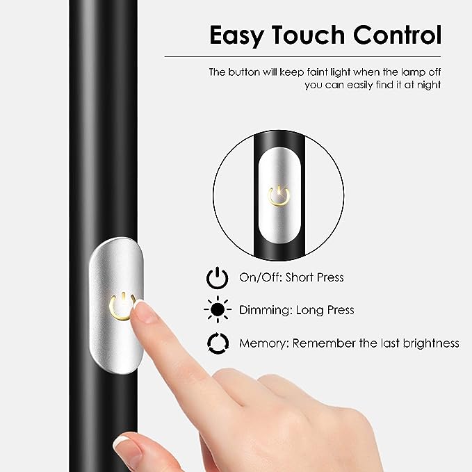 About This Stepless Dimming and Touch Control; This LED floor lamp is designed with a step-less dimer and controlled by...