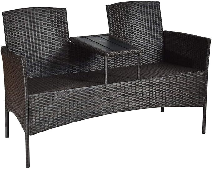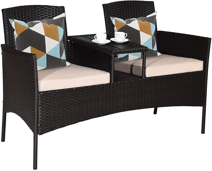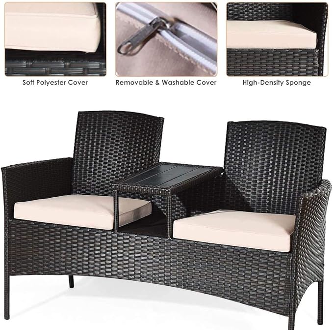 LUARANE Outdoor Rattan Sofas, Contract Patio Conversation Set Wicker Sofa Set with Built-in Coffee Table, Patio Furniture Set with Cushions, Rattan Loveseat for Lawn Backyard Garden (Brown+Beige)